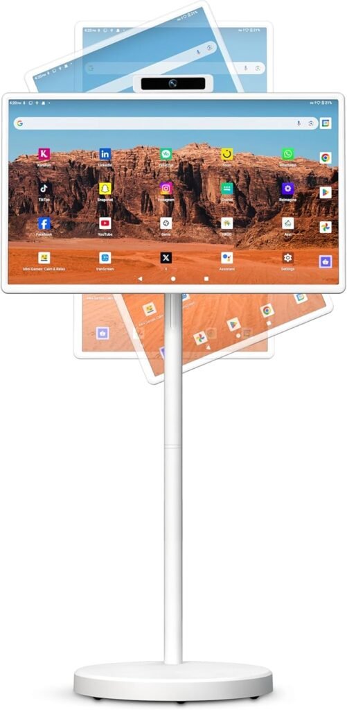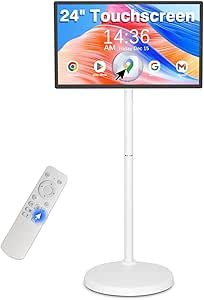 24 Inch Rolling Smart TV with 1080P Touch Screen | Android 13 OS | MTK 8-core CPU | 6G+128G Storage | Built-in 13MP Camera | Remote Voice Control | Full Rotation Portable TV on Wheels