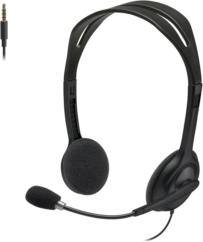 Logitech H111 Wired Headset, Stereo Headphones with Noise-Cancelling Microphone, 3.5 mm Audio Jack, PC/Mac/Laptop/Smartphone/Tablet – Black